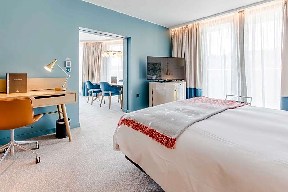King Junior Suite is 527 square feet and includes a king-size bed 150-183 width plus hairdryer and tea and coffee making facilities and is Wheelchair-accessible.
