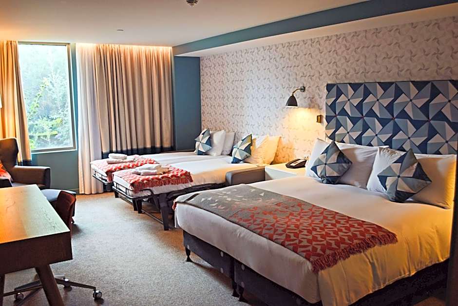 DELUXE is 269 square feet and includes either a queen-size bed 150-154 width or 2 single beds 80-130 width plus desk, satellite tv , hairdryer, tea and coffee making facilities , and safe and is Wheelchair-accessible.